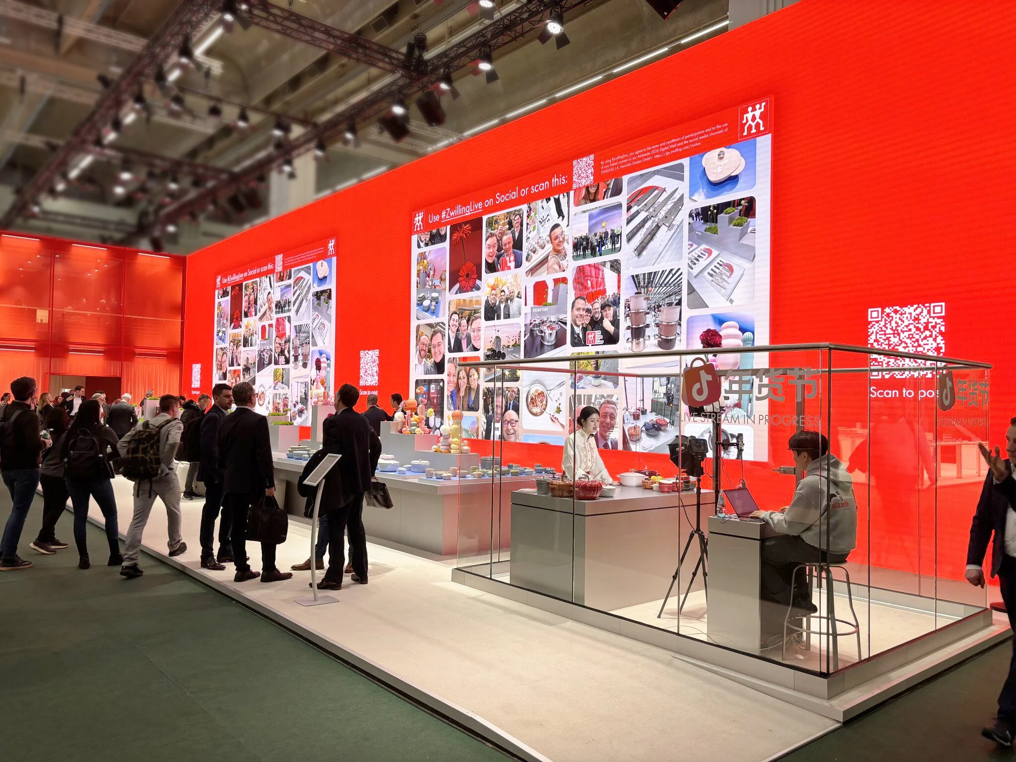 The centerpiece was a striking digital wall showcasing 19 brand films, each highlighting distinct strengths—from precision and performance to craftsmanship and design. To deepen engagement, visitors were invited to share their own moments via #zwillinglive; user-generated photos and videos appeared live on the wall, turning the booth into a participatory, always-moving experience and building a shared sense of brand passion.